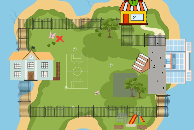 Carte réalisée dans l'objectif de retrouver le trésor caché dans le centre de loisirs !